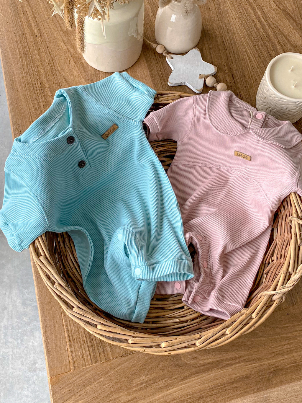 Colores? Rosa viejo y verde agua. Enterito rosa trae cuello camisero y botones en la espalda para mayor comodidad al colocarlos y sacarlos y el enterito verde agua, trae cartera con botones de coco, un detalle unico.