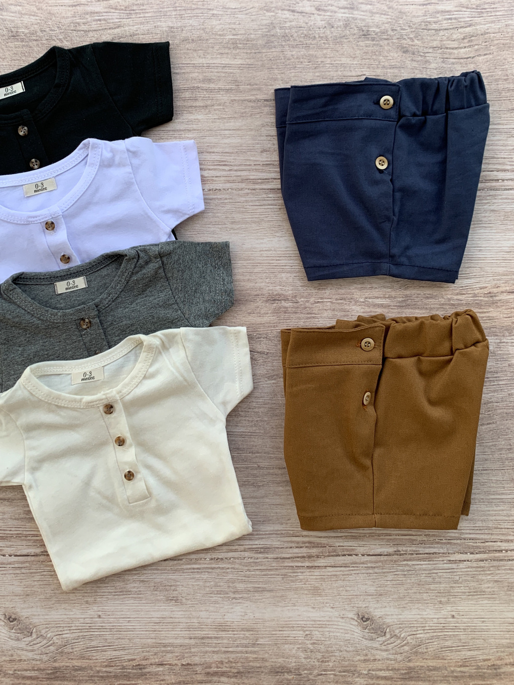 Estos shorts para bebés y niños están confeccionados en gabardina, lo que garantiza la máxima comodidad. Su diseño es simple y funcional, tiene cintura rigida por delante y por detras tiene elastico y un detalle que nos parece UNICO, tiene dos botones en los costados para ponerlo y sacarlo con todo el estilo. Por ser prendas lisas, las convierte en combinables con cualquier color, estampado y textura por encima.